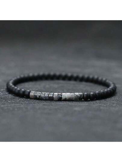 1條極簡風格4mm灰色珠子手鍊,男女皆宜的黑瑪瑙小石手鍊,冥想瑜伽串珠手鍊,情侶手鍊 - 查看 1