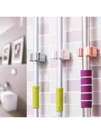 1pcs No Punching, No Marks, Mop Rack Storage, Mop Hook, Bathroom, Bathroom Wall Hanging, Broom Hanger, Mop Clip - 彩色 - 查看 1