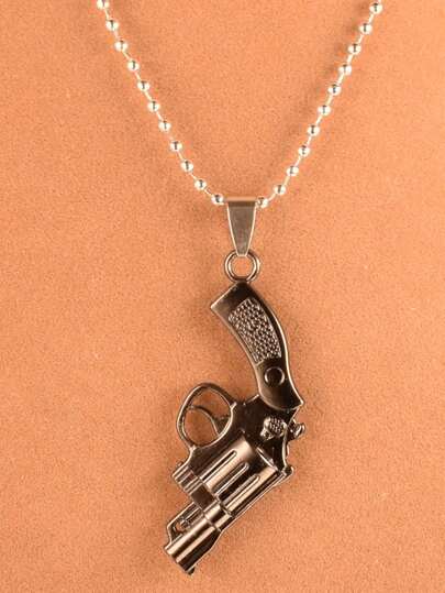1入復古手槍左輪手槍吊墜項鍊,男女皆宜的朋克飾品 - 黑色 - 查看 1