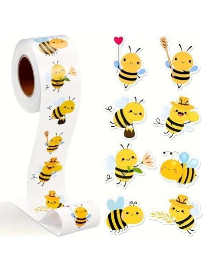 1卷可爱蜜蜂贴纸,适合用作礼物、装饰品和奖励。不对称形状,适合日常办公用品 - 彩色 - 查看 1