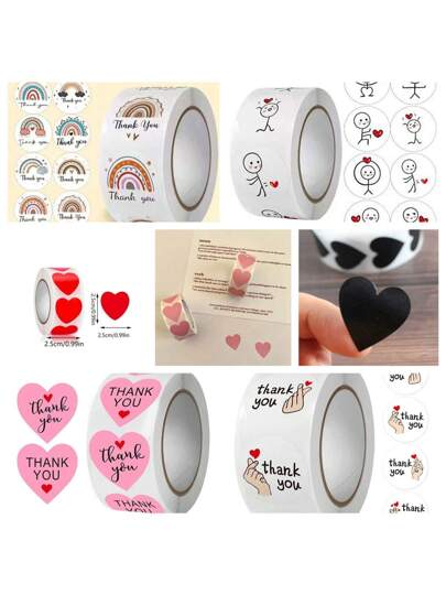 1 捲心形與圓形彩虹感謝貼紙標籤適用於珠寶、diy 裝飾、禮品包裝 - 彩色 - 查看 6