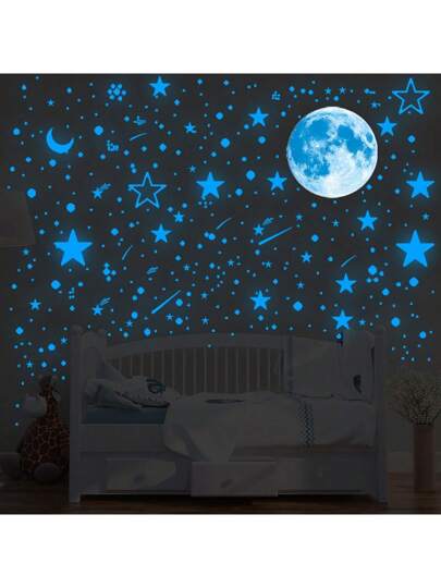 1 套/428 件夜光星星贴纸,天花板月亮和星空星系宇宙装饰夜灯墙贴,夜光星星贴纸卧室儿童房客厅装饰墙贴墙艺术卧室装饰贴纸家居装饰客厅墙纸墙贴派对装饰办公室装饰家居装饰品个性化贴纸 - 彩色 - 查看 3