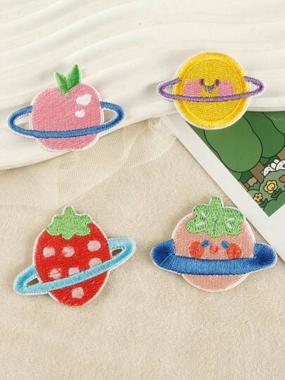 1 套/4 件繡花徽章標籤衣服帽子 Diy 自黏水果星球風格布貼服裝配件 - 彩色 - 查看 3