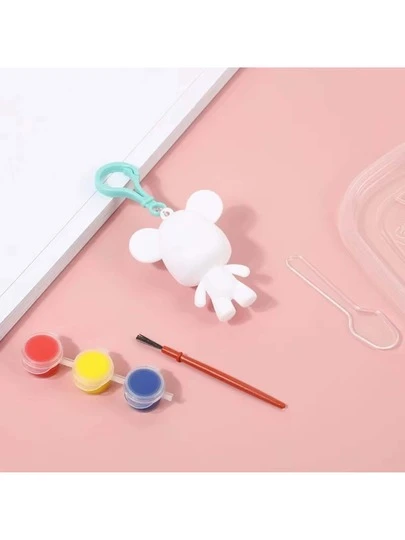 1套亞克力塗料套裝和創意流體熊鑰匙圈成套工具 - 橘色 - 查看 1
