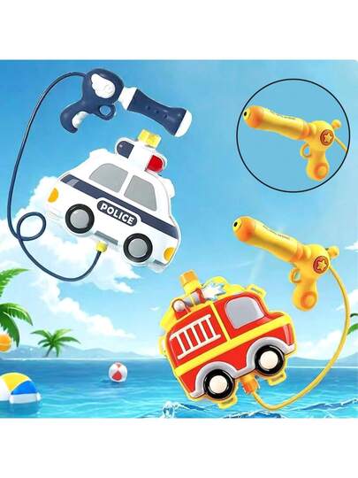 1套兒童背包水槍玩具,拉式水槍適用於戶外水上玩耍,大容量