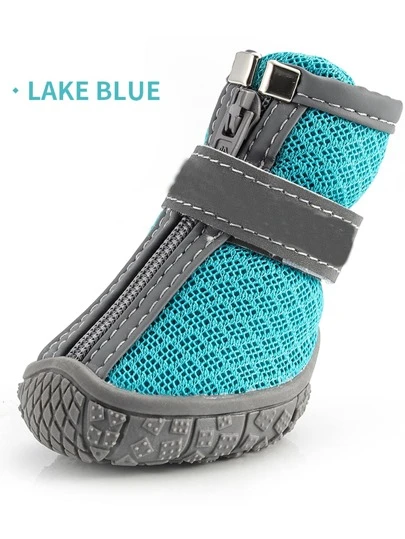 1件套防滑,耐磨&透氣寵物鞋子帶9孔網紗織物和橡膠鞋底,合適的適用於小狗適用於兩者室內和戶外使用,藍色的 - 藍色 - 查看 4