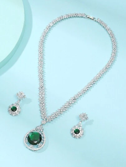 1 套/3 件优雅方晶锆石花朵项链和耳环首饰套装,适合女士,适合婚礼和正式活动情人节、妈妈、母亲、母亲节、礼物 - 花朵 - 查看 10