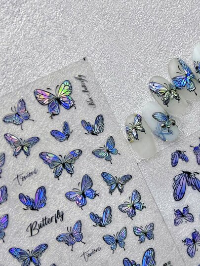 1張5D壓花生動鐳射鐳射跳舞蝴蝶膠黏劑美甲貼紙貼花DIY美甲裝飾品