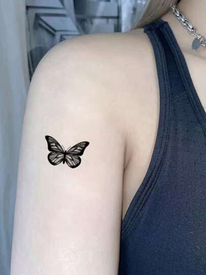 1張蝴蝶樣式紋身貼紙 - 黑色 - 查看 1