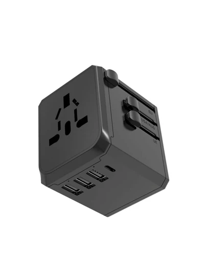 1 個黑色通用旅行轉接器、國際插頭轉接器、6.3a 智慧電源 3.4a3usb1 C 型、電源轉接器旅行充電器、全球插座轉接器、us 至 Eu-uk(c 型/g/a/i 型) - 黑色 - 查看 3