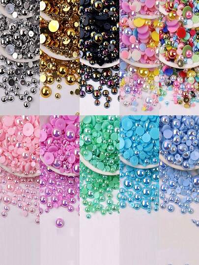 2/3/4/5/6/8/10/12mm半圓形平底AB色假珍珠亞克力樹脂半珍珠DIY手機指甲藝術裝飾配件