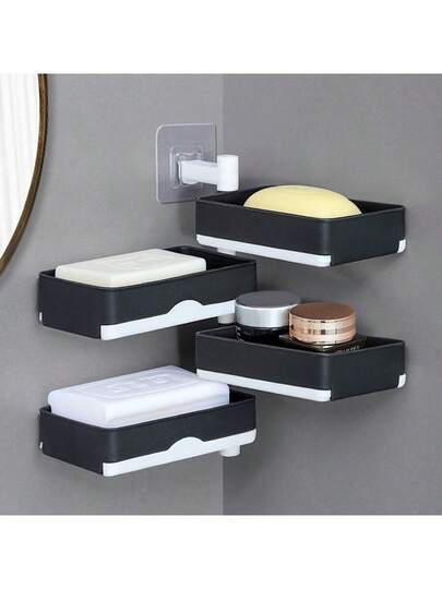 2/3/4层旋转皂碟,浴室壁挂式皂架,沥水皂盒,创意收纳架 - 黑與白 - 查看 1