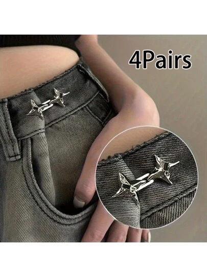 2/4 件可调节腰带,紧身牛仔裤无缝收紧装置,可拆卸星形水钻牛仔腰带扣,金属腰带收紧器,适用于裤子和裙子 - 银色/黑色 - 彩色 - 查看 1