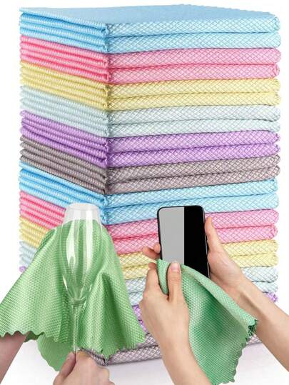 2/5/10 件装超细纤维玻璃清洁布抹布不起毛适用于窗户汽车厨房镜子无痕可重复使用鱼鳞抹布 - 彩色 - 查看 10