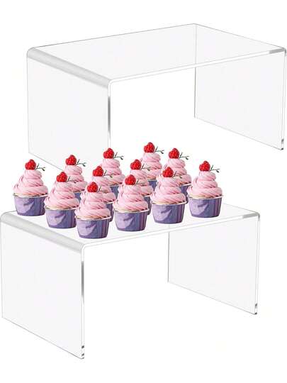 2-Pack 12 Large 5mm Thickness Acrylic Display Risers Figures,Retail And Cabinet Display, Display Riser Shelf Showcase Fixtures Jewelry ( 12''x .75''x 6'')