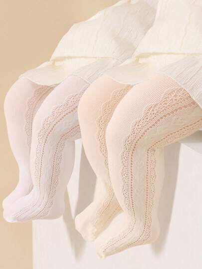 2對寶寶女孩公主空心網眼側面心形透氣緊身褲襪,適合日常穿著和搭配 - 彩色 - 查看 10