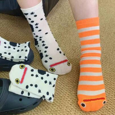 2双花园鳗中筒袜,轻薄可爱卡通条纹情侣趣味袜,尺码35-42,轻盈简约情人节款式 - 彩色 - 查看 5