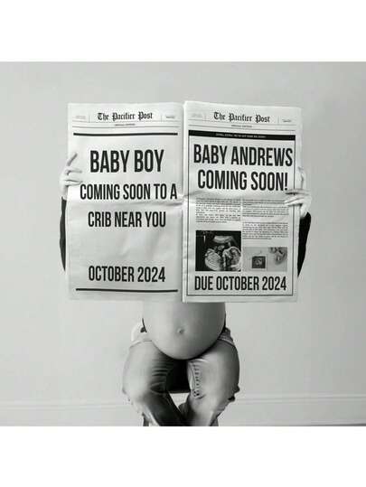 两张大尺寸怀孕公告报纸模板,可定制怀孕通知 - 新生兒公告 - 查看 1