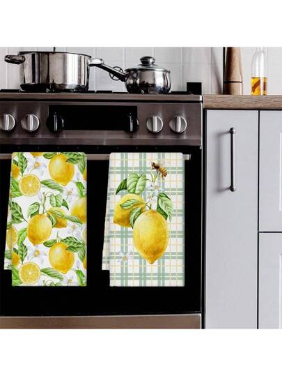 2入組檸檬廚房手巾快速乾燥清潔碗巾,裝飾茶巾檸檬廚房裝飾,適用於新居禮品餐飲、家居、婚禮、宴會自助餐毛巾、浴室廚房用品 - 彩色 - 查看 1