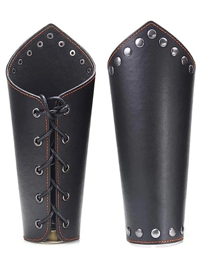2入組皮革護腕手環-中世紀皮革護腕,配有三個環 - 黑色 - 查看 3