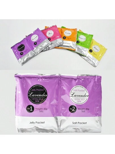 2入組薰衣草晶體浴鹽和果凍浴鹽,晶體泥足部護理,泡腳袋套裝,家庭足部護理 - 紫色 - 查看 5