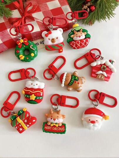 20/10/5/1pc圣诞快乐钥匙扣,圣诞钥匙扣配圣诞老人,姜饼人,圣诞袜,驯鹿,雪人,圣诞树,铃铛图案,节日派对礼物分发,派对小礼物Q - 彩色 - 查看 10