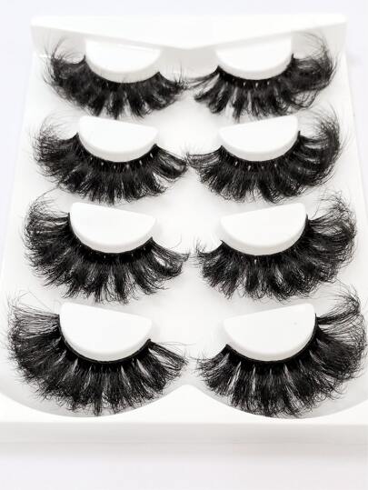 Asiteo 20對/包濃密卷曲蓬鬆捲翹假睫毛,貂毛假睫毛,貓眼眼妝狐狸眼拉長假睫毛,美妝必備的8d卷翹假睫毛條,增長和加厚眼角,打造美麗妝容 - 黑色 - 查看 4