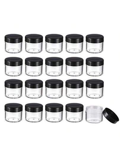 20入組圓形罐子塑料化妝品容器套件,帶蓋子,可盛放液態乳霜樣品,20毫升/ 0.7盎司(黑色、白色、透明、粉紅、青綠四種蓋子可選) - 黑色 - 查看 1