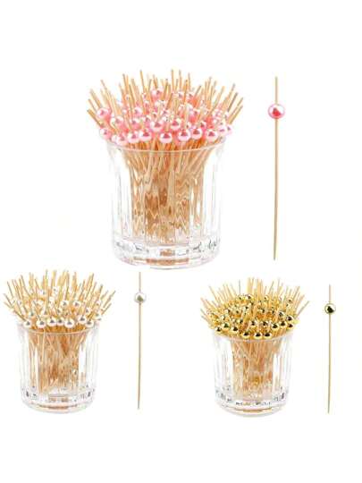 200/100/50/10 件 4.7 英寸仿珍珠签,开胃菜派对装饰,优雅开胃菜和肉串食物装饰签,派对、生日装饰,适用于户外、露营 - 彩色 - 查看 1