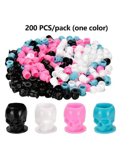 200 件一次性纹身墨水帽骷髅纹身杯,塑料墨水帽带稳定底座永久化妆颜料容器帽纹身配件 - 彩色 - 查看 1