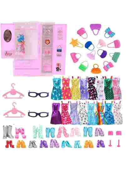 2023時尚娃娃屋家庭家具配件衣櫃櫥櫃收納盒和鞋衣服配件套裝,30入組隨機 - 彩色 - 查看 2