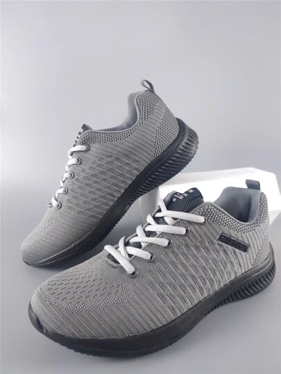 2024 新款春秋男鞋韩版前系带轻便休闲男女户外运动鞋透气通勤商务徒步散步跑步鞋男士 - 灰色 - 查看 1