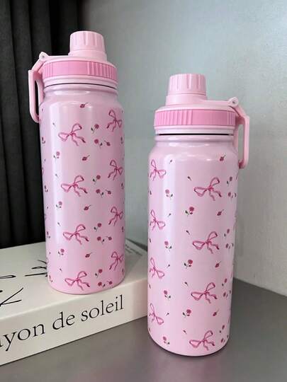 2024 热销 18 盎司/530 毫升美观白色不锈钢杯 - 压花玫瑰和蝴蝶结设计,防漏旋转盖,便携式手柄 | 24 小时保温,304,女士旅行杯 - 彩色 - 查看 2