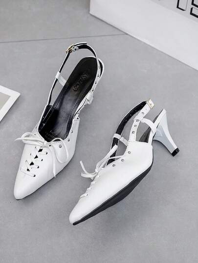 2024新款女性時尚高跟尖頭涼鞋,閉趾款式 - 白色 - 查看 1
