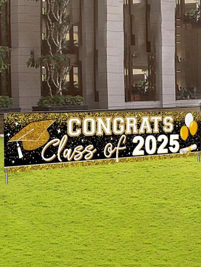 2025 大型毕业祝贺横幅,祝贺毕业横幅金色 2025 届毕业班横幅背景毕业 2025 毕业派对用品庭院标志毕业装饰品 - 彩色 - 查看 2