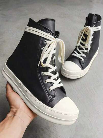 1双防水防滑滑板鞋,男女通用,2025新款秋冬PU皮鞋 - 黑色 - 查看 1
