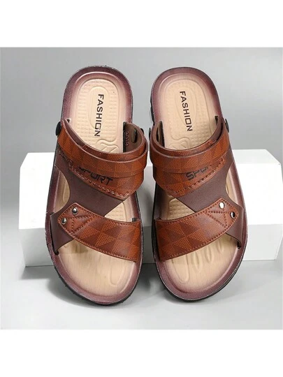 2025 新款男士时尚百搭夏季透气拖鞋,适合开车和日常穿着, - 棕色 - 查看 1
