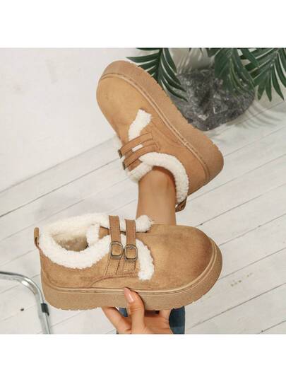 2025年新款厚底女式雪地靴,冬季毛绒保暖内衬一脚蹬复古鞋 - 駝色 - 查看 2