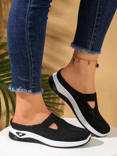 2025 新款女士透气网眼一脚蹬穆勒鞋,透气镂空设计,一脚蹬休闲鞋,舒适休闲百搭 - 黑色 - 查看 2