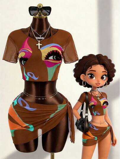 Zestiva 2026新款复古人脸印花性感网纱四件套比基尼