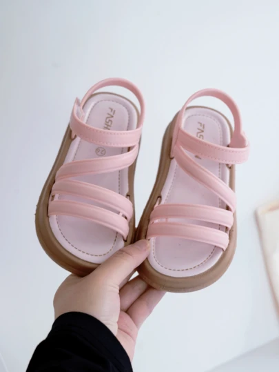 2026夏季新款儿童时尚多带公主凉鞋,女童软底防滑沙滩鞋,魔术贴设计,适合1-3岁儿童,简约粉色凉鞋 - 粉色 - 查看 1