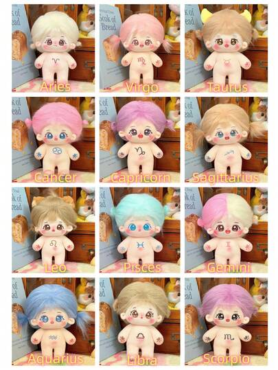 20厘米可爱毛绒棉质偶像娃娃(无骨架),星形十二生肖填充娃娃,女孩换装礼物