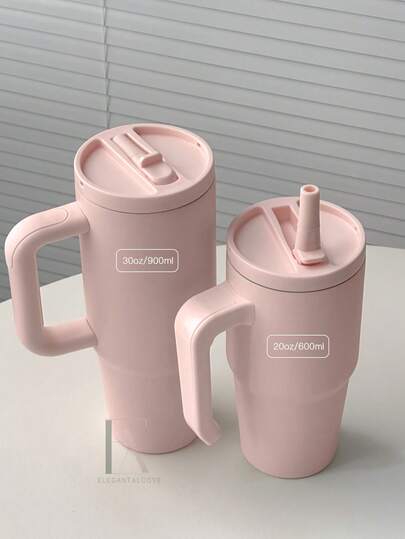 20盎司防漏保温杯,带提手和可折叠吸管,双层真空隔热,冷热饮皆宜,简约旅行杯 - 多色/20oz - 查看 1