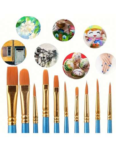 20 件/2 套艺术家尼龙圆头/尖头/平头画笔,适用于画布上的丙烯画、油画和水彩画 - 彩色 - 查看 10