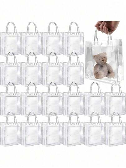 20个装大号透明礼品袋,带提手,加厚可重复使用透明PVC礼品袋,可重复使用塑料派对礼品袋,适用于派对、婚礼回礼、购物袋、透明礼品袋、情人节礼品包装袋、婚礼派对礼品袋、鲜花袋、母亲节礼物、礼品、新娘送礼会、毕业季礼物(7.87英寸 x 7.87英寸 x 3.15英寸)