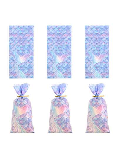 20入組美人魚鱗紋糖果禮袋,附扭扭扎,雪花餅乾袋,拉繩禮物袋,適用於生日派對用品,婚禮小禮物袋和裝飾 - 彩色 - 查看 1