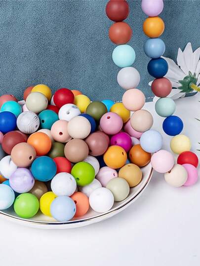 20入組15mm矽膠珠子,適用於嬰兒咬咬和diy珠寶製作,糖果色圓形散珠