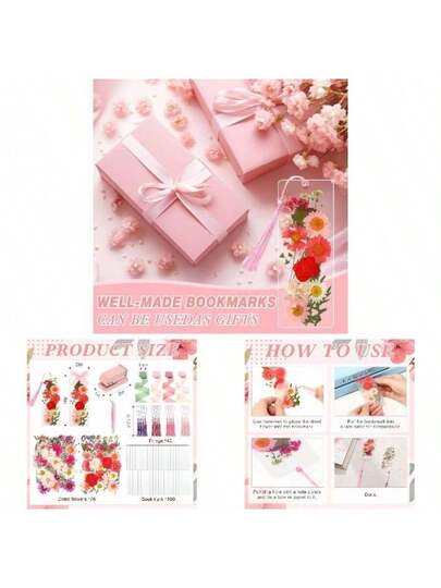 222 Pcs Dried Flower Bookmark Making Kit Include Pressed Flower Colorful Tassels Ribbons And Transparent Bookmark Laminating Pouches 2x 6 Inch Classic Color