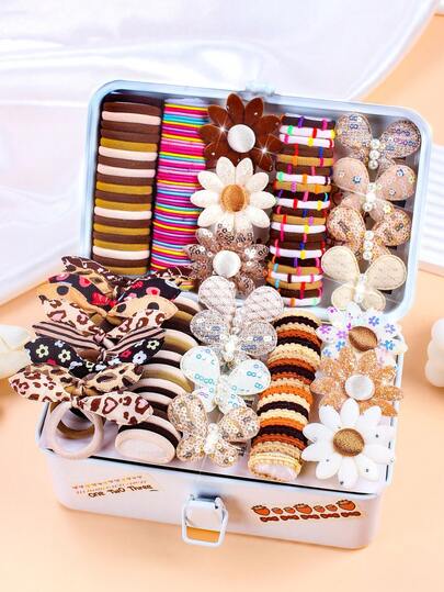 236件/套咖啡色仿珍珠蝴蝶向日葵发饰套装,包含发圈、兔耳朵发绳、向日葵蝴蝶发夹 - 适合女孩和女士,打造温暖的冬季日常、派对、旅行等造型,包含头饰、爪夹、马尾发圈、发带等。 - 彩色 - 查看 7