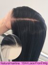 24 英寸直发黑色合成发蕾丝前部自由式假发适合日常佩戴